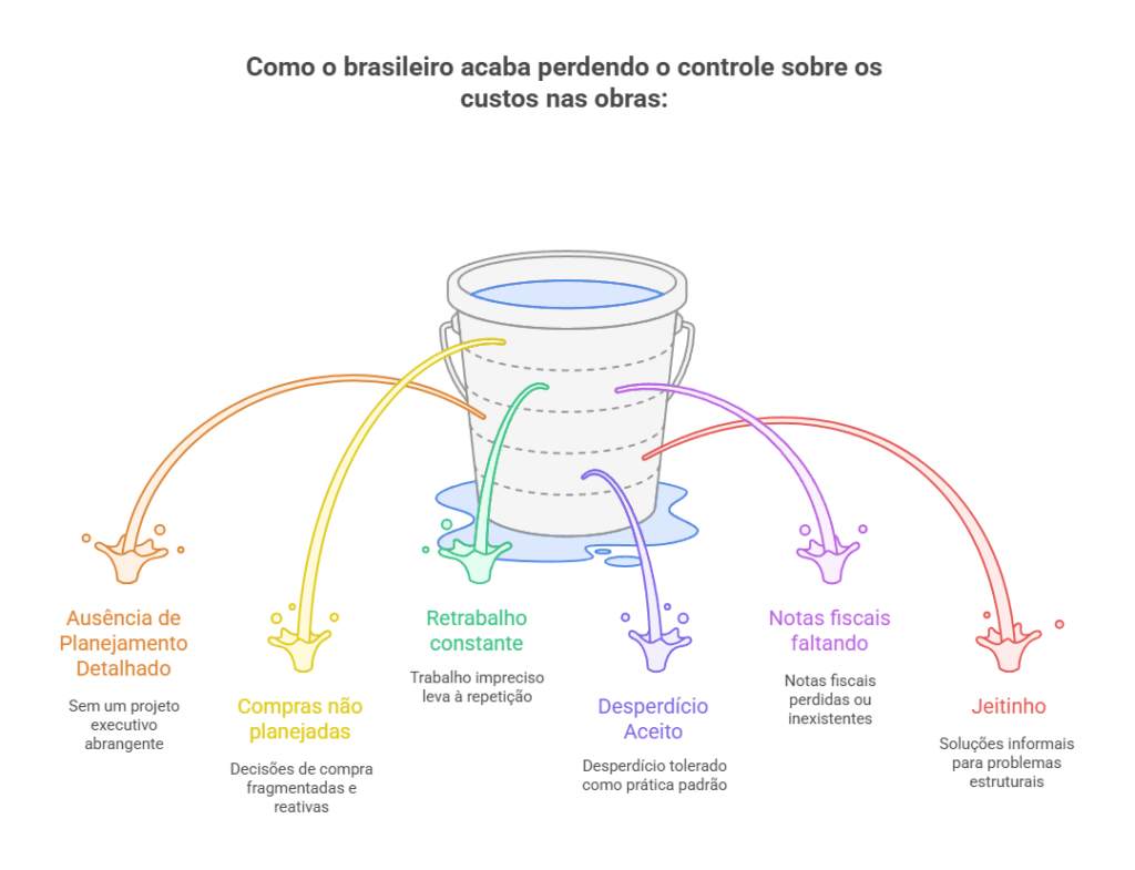 A crença no custo fixo por metro quadrado nasceu de uma combinação perigosa: orçamentos imprecisos + falta de controle de custos, características historicamente presentes na construção civil brasileira.